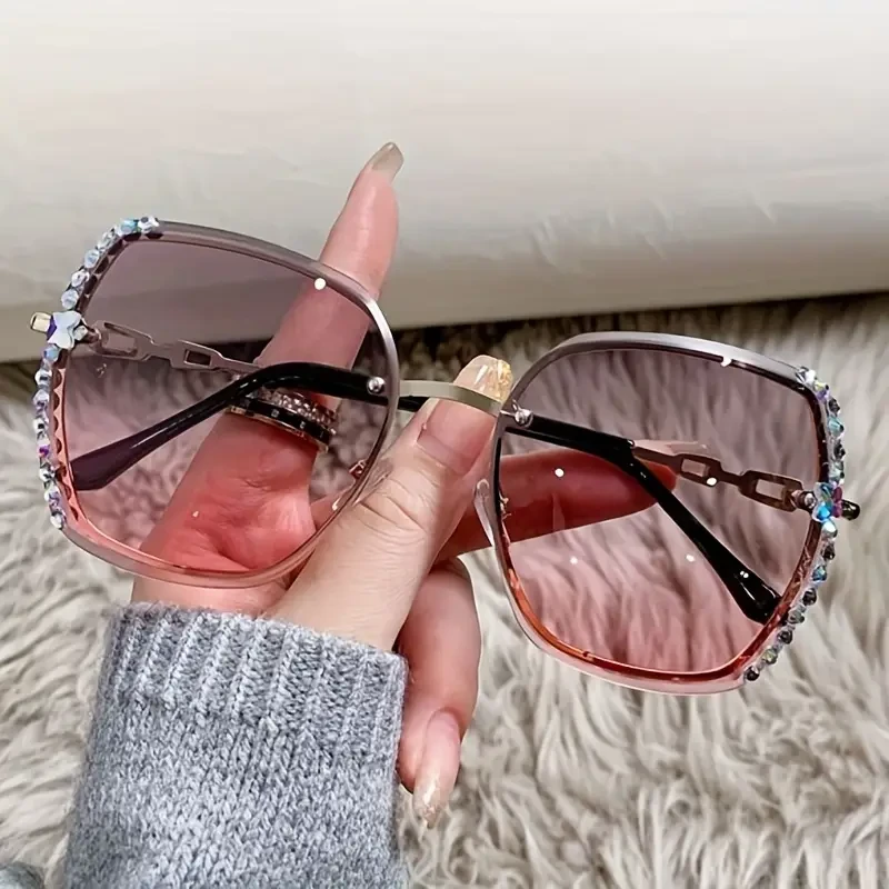 Women's Rimless Gradient Fashion Glasses | Metal Frame with Rhinestone Embellishments