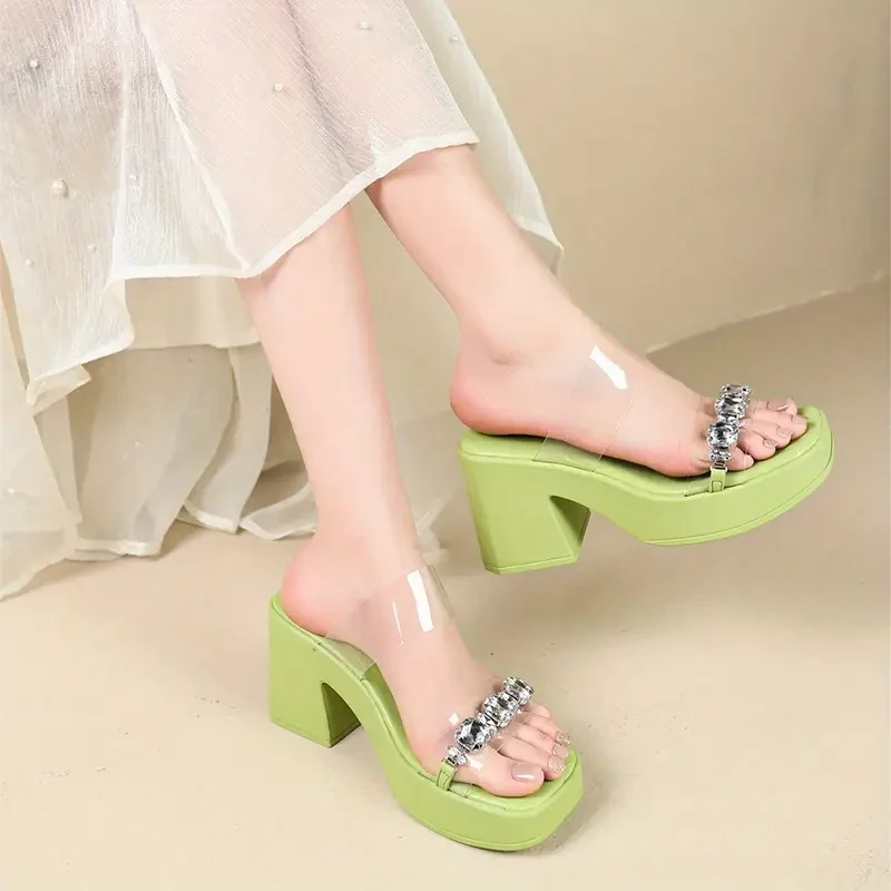 Women'S Summer Slide Sandals - French-Inspired Thick Sole, Open Toe with Ankle Strap, Faux Cover, Pink & Green with White Wedge Heels, Elegant Indoor/Outdoor Wear, Strappy Sandals